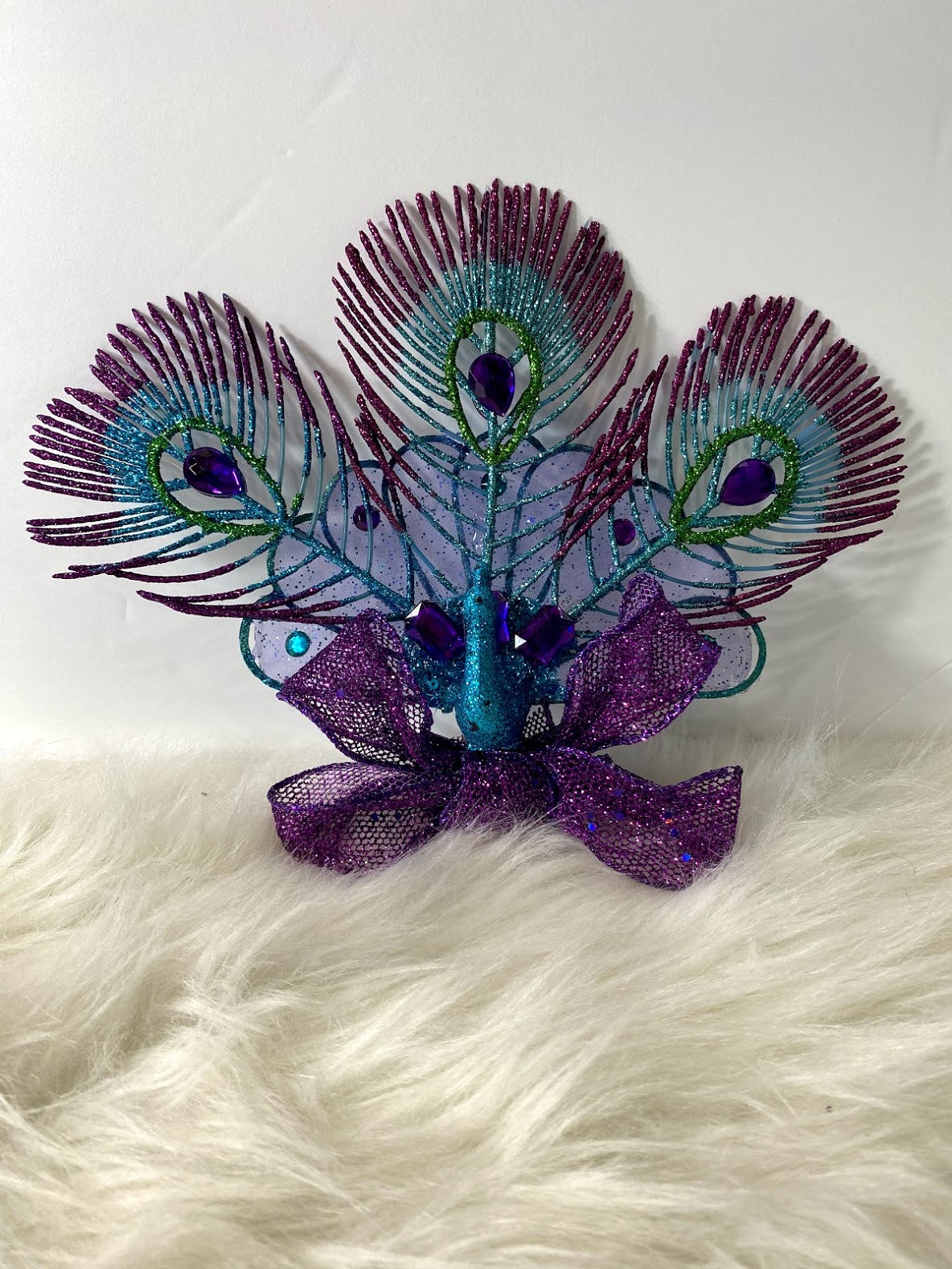 Turquoise Peacock Accented W/Purple Sparkly Bow & Purple Rhinestones